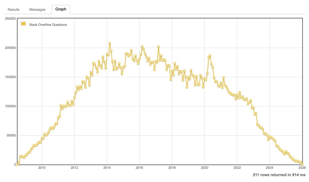 Le domande a Stack Overflow sono drammaticamente crollate, ma curiosamente il motivo non è (solo) l’AI