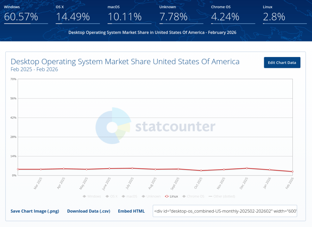 Nel caso del 5% la fonte era diversa, si trattava infatti di Statcounter e si riferiva al Nord America, ma controllando oggi, i dati sono in linea con quanto ha mostrato il survey di Steam: