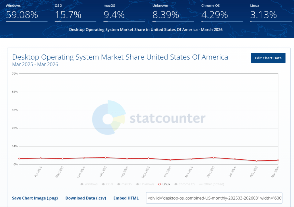 Fermi tutti! Marzo 2026 è stato il mese del Desktop Linux, che rimbalza ad un record di utilizzo del 5.33%